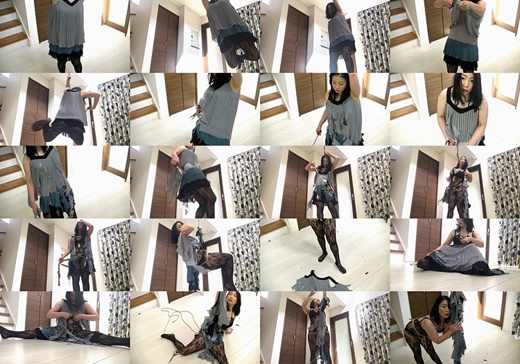 "千花の脳内世界"「マリオネットの反逆」“松山散歩”で着てたワンピース。体を繋がれてクルクルゆらゆらしながら服を切り裂いて、ボロボロになった服を自分の代わりに吊るして残してく。