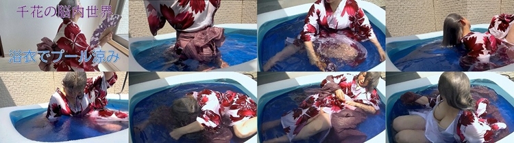 千花の脳内世界「浴衣でプール涼み」初めての浴衣。真夏に着るには暑過ぎて驚き。こんな苦しい装いで夏祭りや花火大会に行くなんて無理。自宅の家庭用プールでゆっくり濡れて涼を取るのが一番。長年使い込んで古くなった扇子を供養しながら…