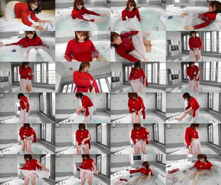 "破くのははじめて"赤いセーターにロングスカートにロングブーツという冬の服装。もう冬も終わりなのでこの服好きにしちゃっていいんです。とりあえず着たままバスタブに浸かってびしょびしょになったセーター。ロングスカートをびりびりと破きだす。そうなんです、もういいんです。ぜんぶ破いてボロボロにしちゃうんです。